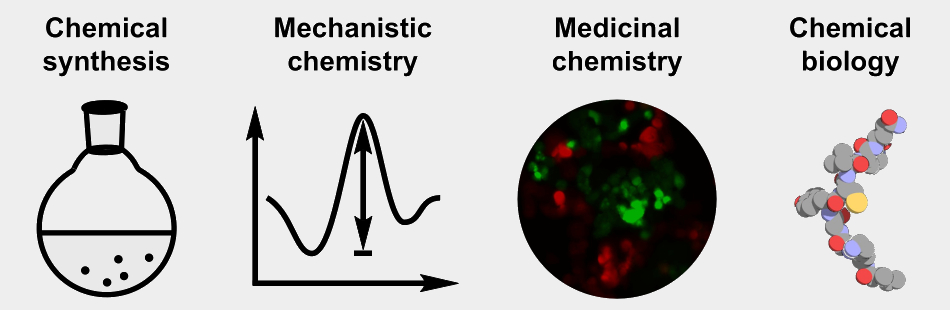 Specifically, guided by principles in physical organic chemistry, our research focuses on synthesizing various small molecules for biological and pharmaceutical applications.